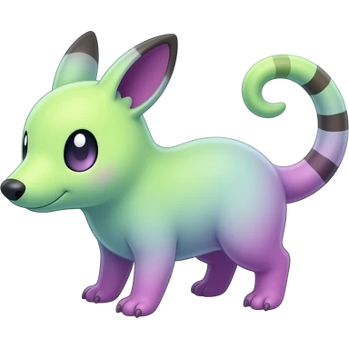 Iridescent Neon Green-Cyan-Magenta-gradients Minccino-Emolga-Numbat-Sergal-fusion-hybrid-animal-creature, full body emoji