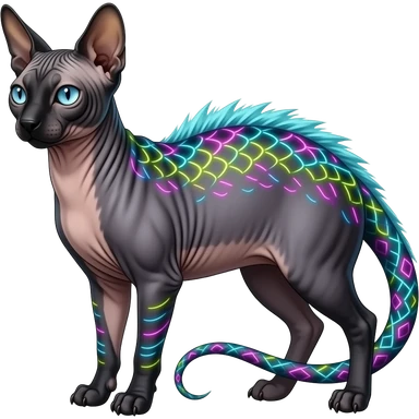 Flurry furry colorful dark edgy neon-glowing-patterns on gloomy dusky scaly sergal-serval-possum-sphynx-Koi-sergal-fusion-animal-hybrid-creature with a snake-tail emoji