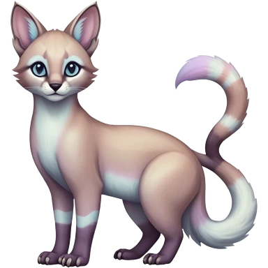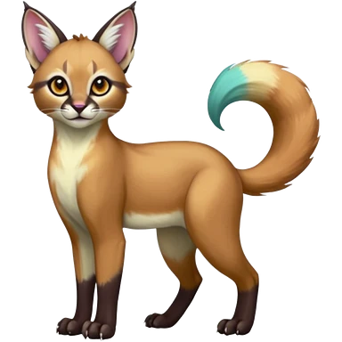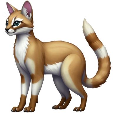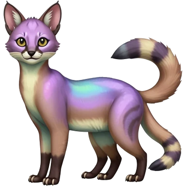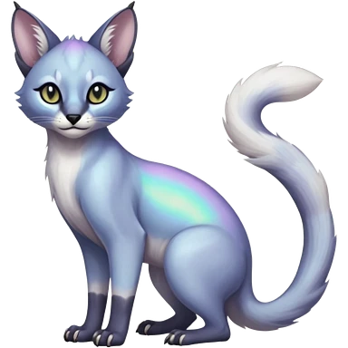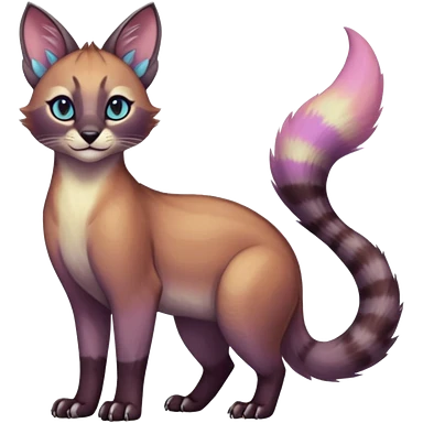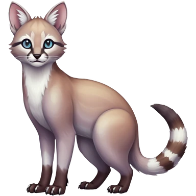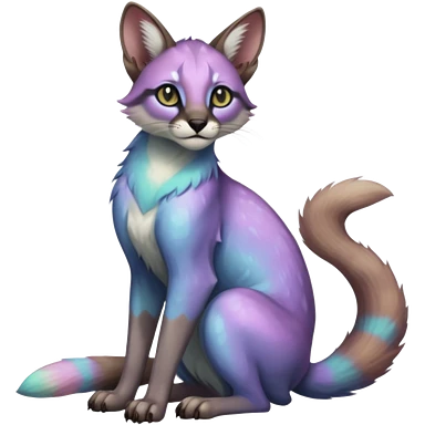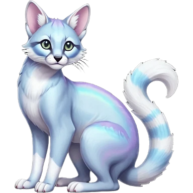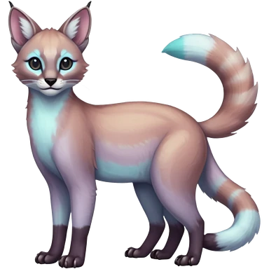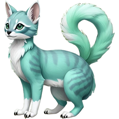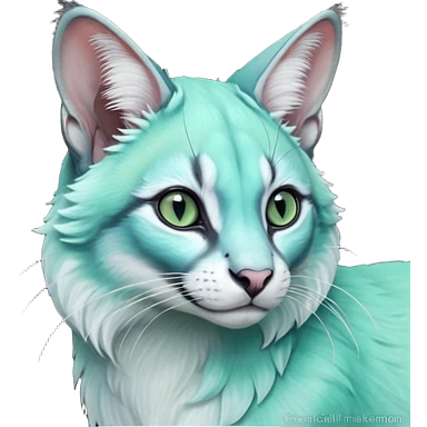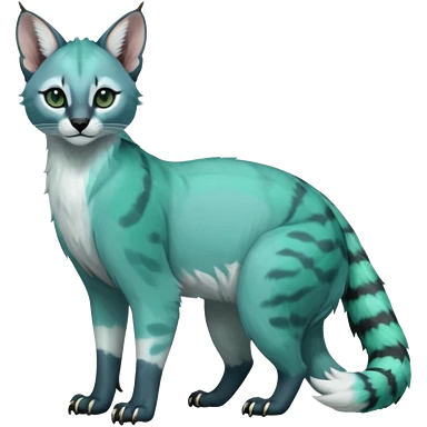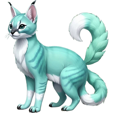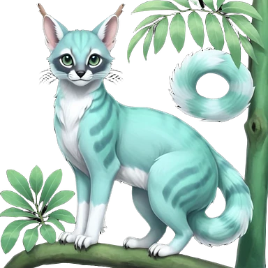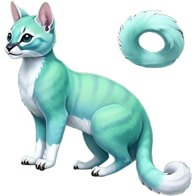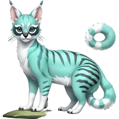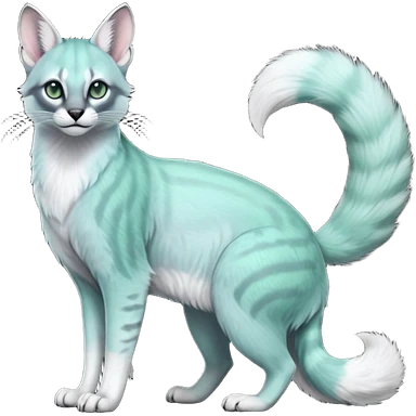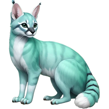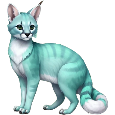 Colorful dark realistic tropical iridescent pale light jade-green, mint-blue, whitish pastel white glorious divine exotic cute cool beautiful shiny beautiful fantasy-caracal-civet-genet-sergal-vernid-Cacomistle-Trico-oncilla-animal-Fakémon-hybrid-fursona (full body)emoji