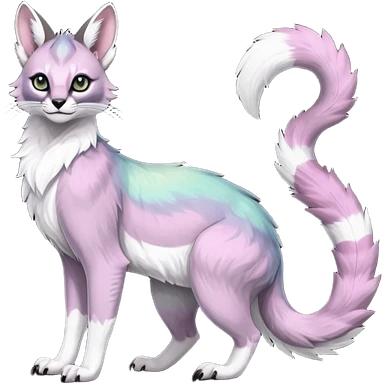 Colorful dark tropical pastel-violet iridescent pastel white glorious divine exotic cute cool beautiful shiny beautiful fantasy-caracal-civet-genet-sergal-vernid-Gryphon-Cacomistle-Trico-oncilla-animal-Fakémon-hybrid-fursona (full body) emoji