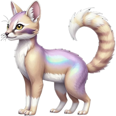 iridescent pastel glorious divine exotic cute cool beautiful shiny beautiful fantasy-caracal-civet-genet-sergal-vernid-Cacomistle-oncilla-animal-Fakémon-hybrid-fursona (full body) emoji