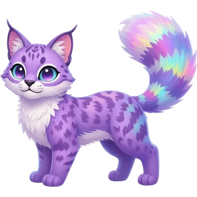 Colorful tropical pastel-lilac-lavender-violet iridescent pastel white glorious divine exotic cute cool beautiful shiny beautiful fantasy-caracal-civet-genet-sergal-vernid-Cacomistle-oncilla-animal-Fakémon-hybrid-fursona (full body) emoji