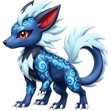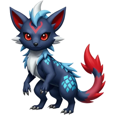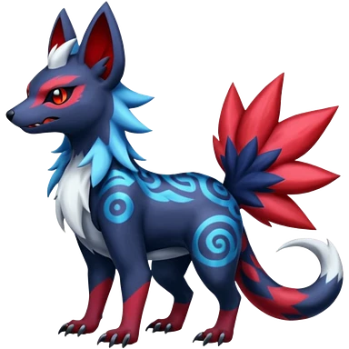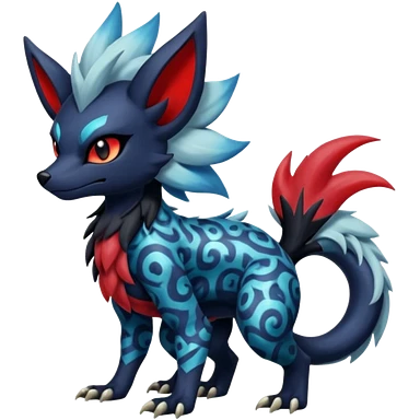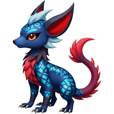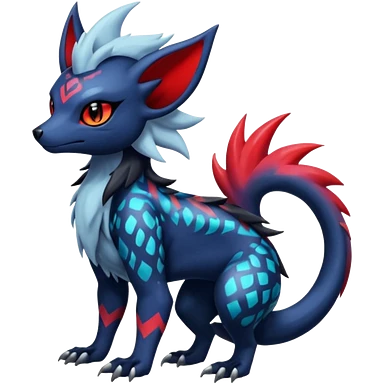 Colorful patterned esoteric shiny glowing scaly scary cool badass edgy Zorua-Absol-Zangoose-Salandit-fusion (full body) emoji