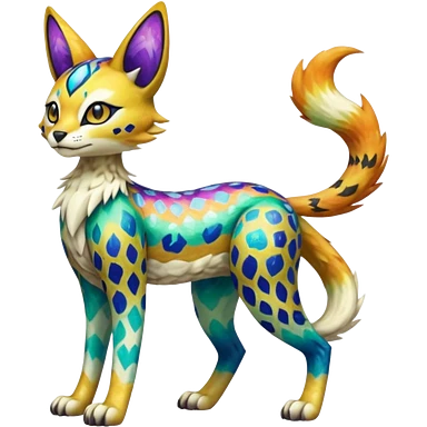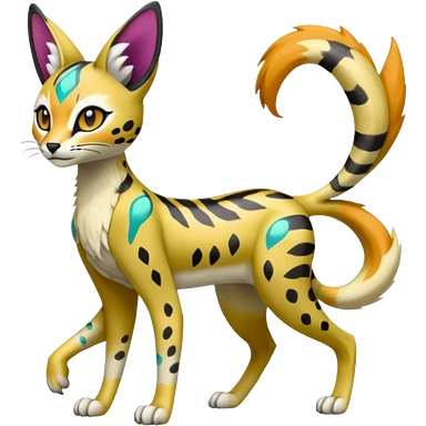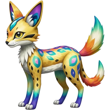 Colorful Meloetta-Sergal-Serval-Genet-Pokémon-Digimon-Fakémon-fusion-hybrid-creature emoji