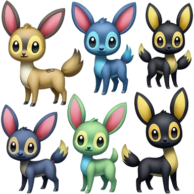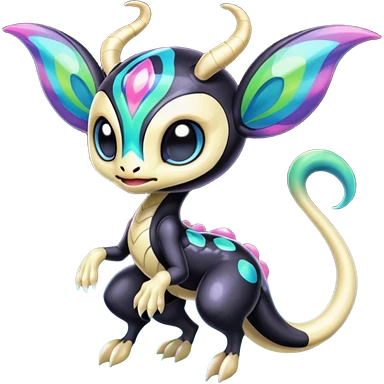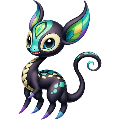 Colorful Exotic Meloetta-Skiddo-Umbreon-Stitch-Fakémon-creature-hybrid emoji