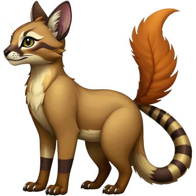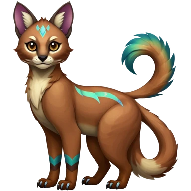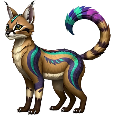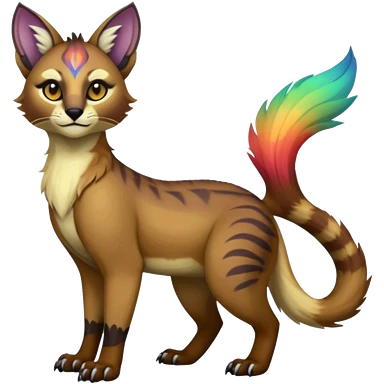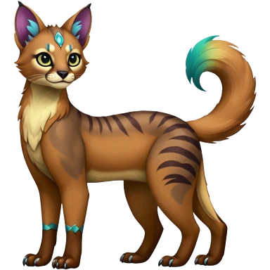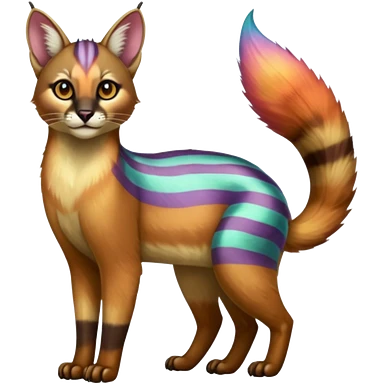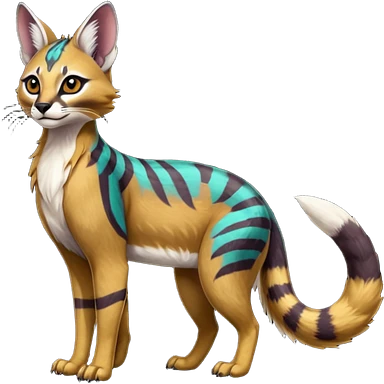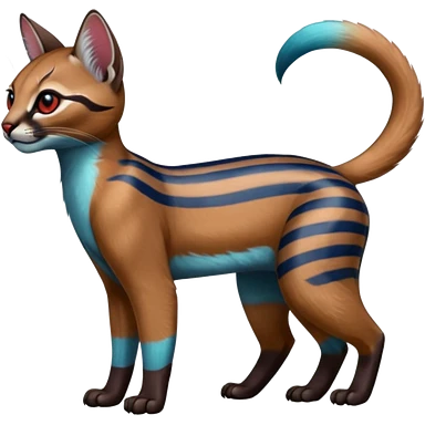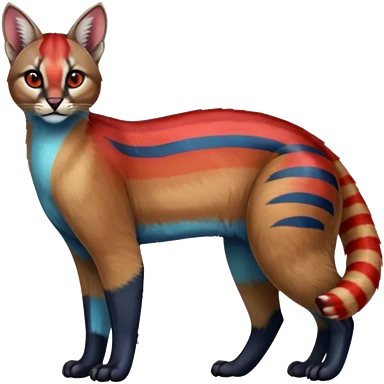 Colorful exotic shiny striped cobalt-blue-cyan-iridescent-gradients-colored fur coat with red markings tropical glorious divine exotic cute cool beautiful realistic caracal-civet-genet-sergal-vernid-Cacomistle-Trico-oncilla-animal-Fakémon-hybrid-fursona (full body)emoji