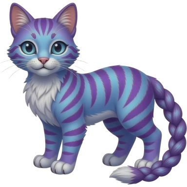 White vernid fantasy creature LiLaiRa Kamirah Falvie whiskers paws full body with pastel purple blue gradient stripes braided tail feline emoji