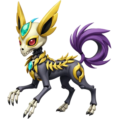 Colorful Skeletal skull-faced masked Futuristic Meloetta-Manectric-Solgaleo-Raikou-Pokémon-Digimon-Fakémon-fusion-hybrid-creature emoji