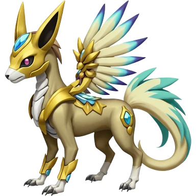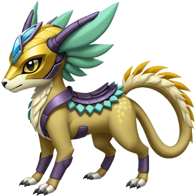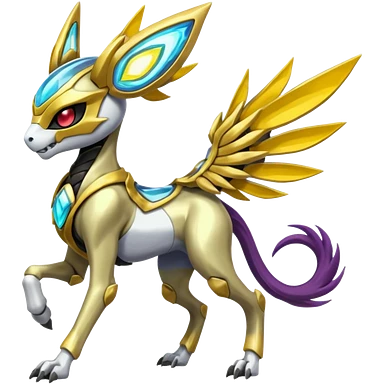 Colorful Futuristic Meloetta-Solgaleo-Raikou-Wargreymon-Sergal-Pokémon-Digimon-Fakémon-fusion-hybrid-creature emoji
