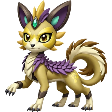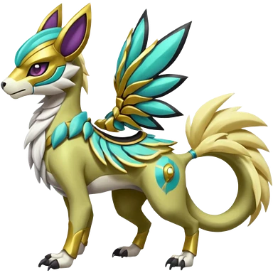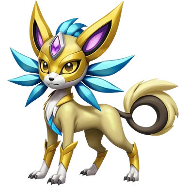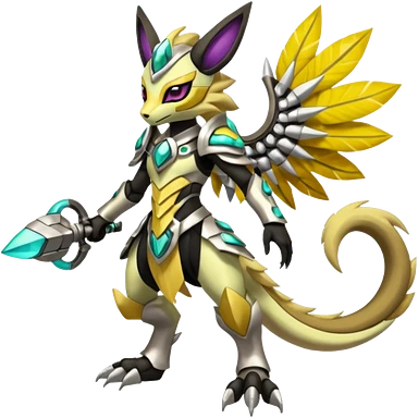 Colorful Futuristic Meloetta-Renamon-Manectric-Solgaleo-Raikou-Pokémon-Digimon-Fakémon-fusion-hybrid-creature emoji