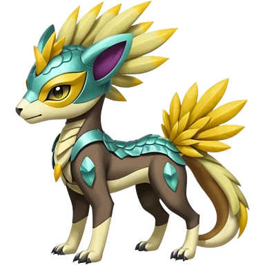 Colorful masked armored leathery scaly furry Futuristic Meloetta-Manectric-Solgaleo-Raikou-Pokémon-Digimon-Fakémon-fusion-hybrid-creature emoji