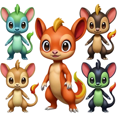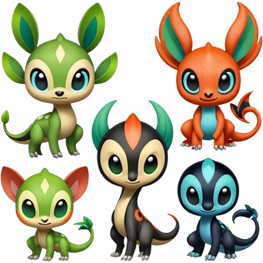 Colorful Exotic Meloetta-Charmander-Chimchar-Virizion-Venom-Stitch-Fakémon-creature-hybrid emoji