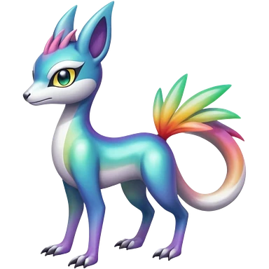 Colorful shiny gradients-colored Meloetta-Sergal-Palkia-hybrid-fusion-Fakémon-creature, full body emoji
