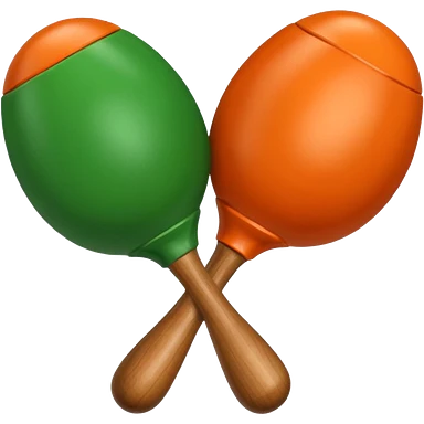 Green-and-orange maracas with glossy finish and thick handles. emoji
