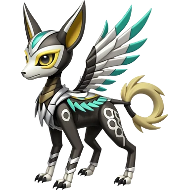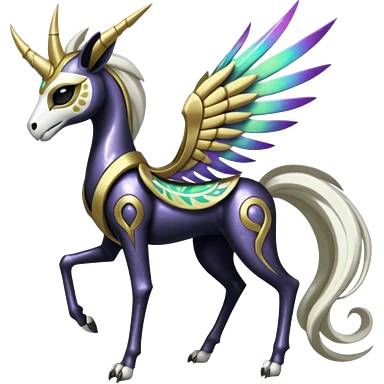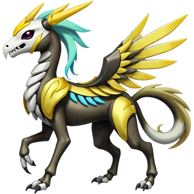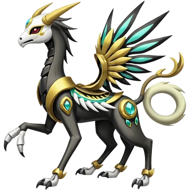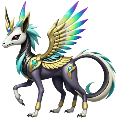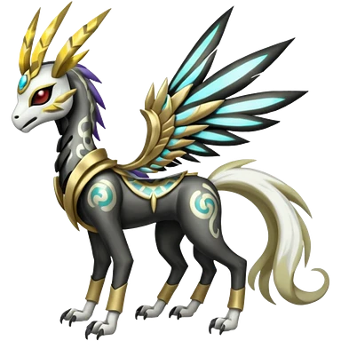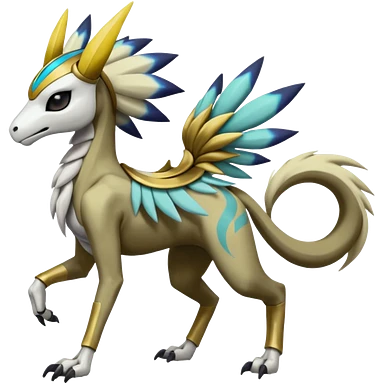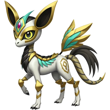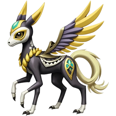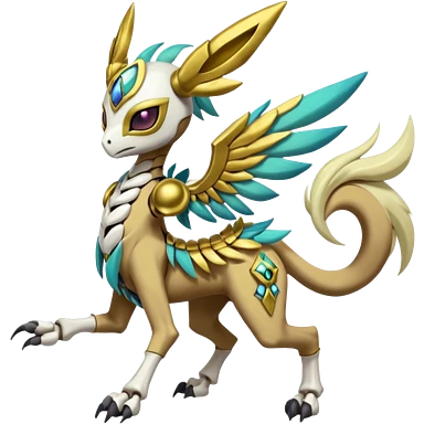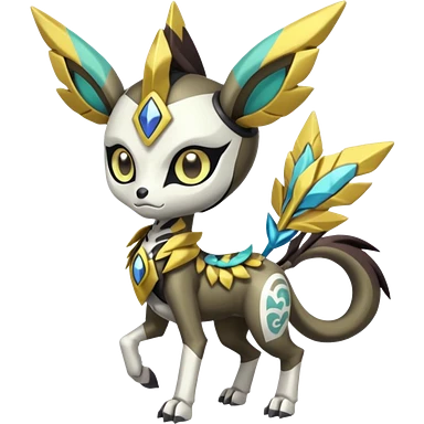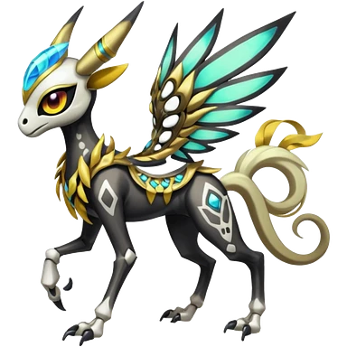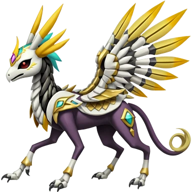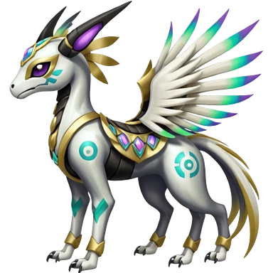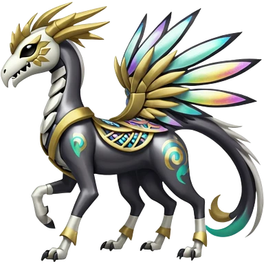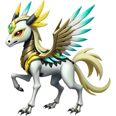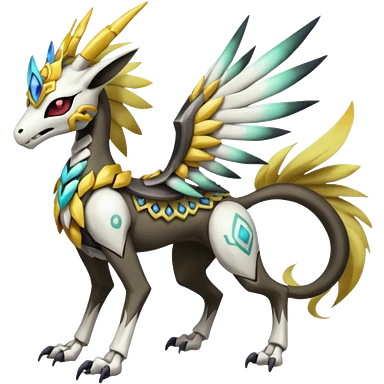 Colorful Royal Glittery Elegant Divergent Divine Gracious Beuatiful Shiny Tribal Skeletal masked armored Meloetta-Silvally-Solgaleo-Raikou-Pokémon-Digimon-Fakémon-fusion-hybrid-creature, full body emoji