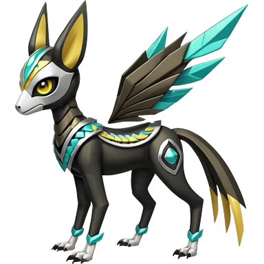 Futuristic feral quadrupedal Arrow-patterned chevron-marked Big-eyed anime-styled Colorful Shiny Tribal Skeletal masked armored Meloetta-Silvally-Solgaleo-Raikou-Pokémon-Digimon-Fakémon-fusion-hybrid-creature, full body emoji