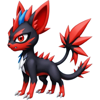 Colorful Meloetta-Houndour-Guilmon-Darkrai-Pokémon-Fakémon-fusion-hybrid-creature with abstract markings emoji