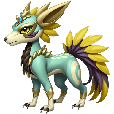 Colorful Futuristic Meloetta-Renamon-Manectric-Solgaleo-Raikou-Pokémon-Digimon-Fakémon-fusion-hybrid-creature emoji