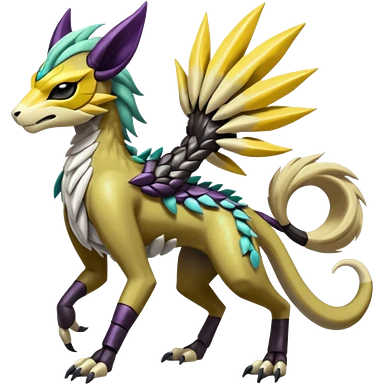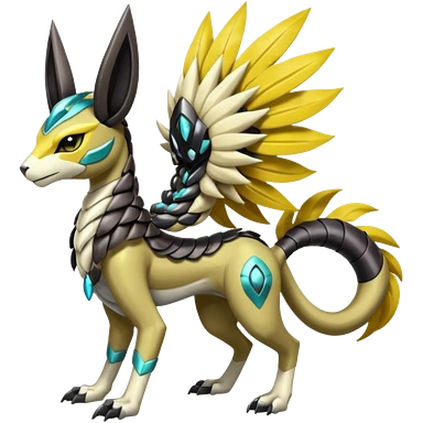 Colorful Futuristic Meloetta-Zeraora-Manectric-Solgaleo-Raikou-Pokémon-Digimon-Fakémon-fusion-hybrid-creature emoji