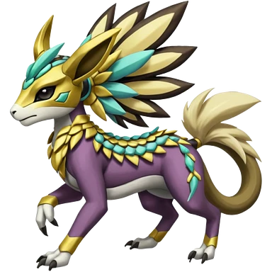 Colorful masked armored leathery scaly furry feral quadrupedal Meloetta-Manectric-Solgaleo-Raikou-Pokémon-Digimon-Fakémon-fusion-hybrid-creature emoji