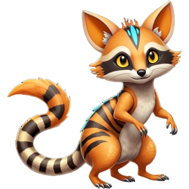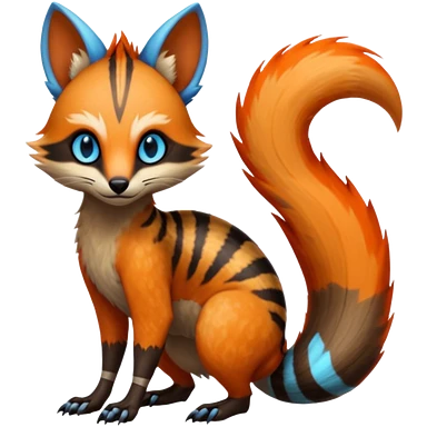 Fiery Wicked Cool Hot Edgy Badass Genet-Numbat-Sergal-Meloetta-Vernid-Civet-Trico-fusion-hybrid-creature emoji