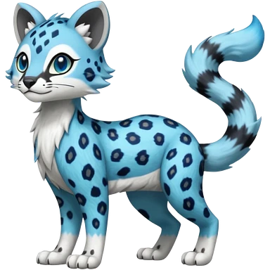 Colorful Meloetta-Sergal-Snow-Leopard-Civet-Genet-Pokémon-Digimon-Fakémon-fusion-hybrid-creature with Cyan stripes and blue leopard-spot-markings emoji