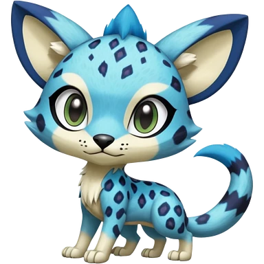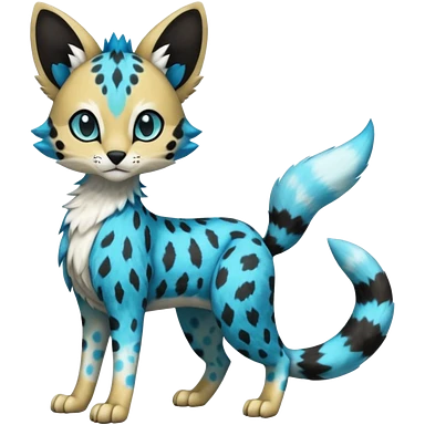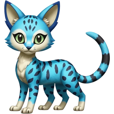 Colorful Meloetta-Sergal-Serval-Civet-Genet-Pokémon-Digimon-Fakémon-fusion-hybrid-creature with Cyan stripes and blue leopard-spot-markings emoji