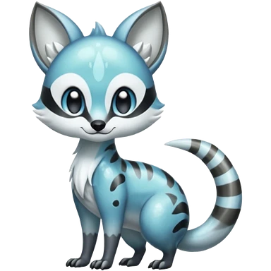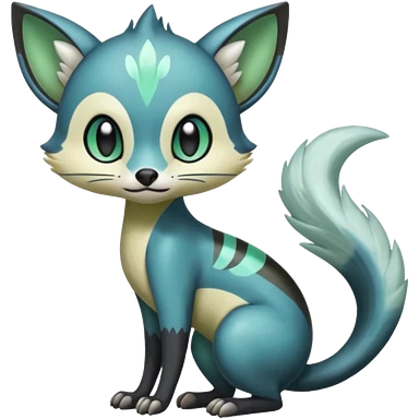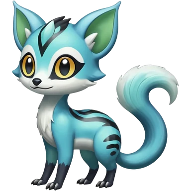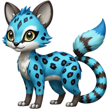 Colorful Meloetta-Sergal-Civet-Genet-Pokémon-Digimon-Fakémon-fusion-hybrid-creature with Cyan stripes and blue leopard-spot-markings emoji