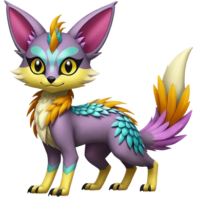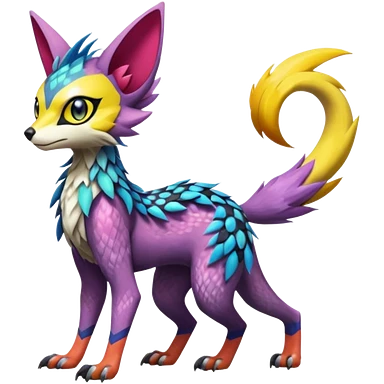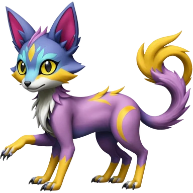 Colorful Exotic Meloetta-Lykoi-Sergal-Renamon-Pokémon-Digimon-Fakémon-fusion-hybrid-creature emoji