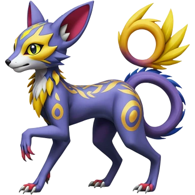 Colorful Meloetta-Bolthund-Renamon-Wargreymon-Sergal-Pokémon-Digimon-Fakémon-fusion-hybrid-creature emoji
