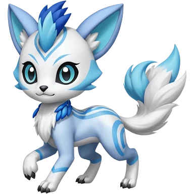 Colorful Meloetta-Sergal-Serval-Genet-Pokémon-Digimon-Fakémon-fusion-hybrid-creature with Cyan stripes and blue leopard-spot-markings emoji