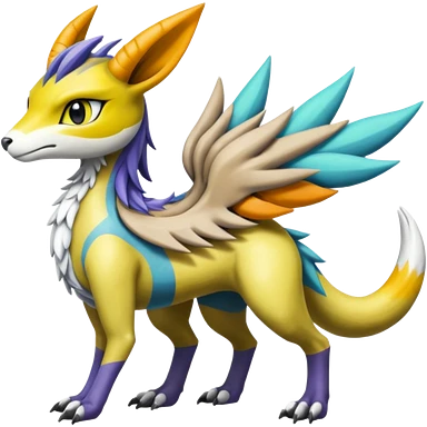 Colorful Meloetta-Bolthund-Renamon-Wargreymon-Sergal-Pokémon-Digimon-Fakémon-fusion-hybrid-creature emoji