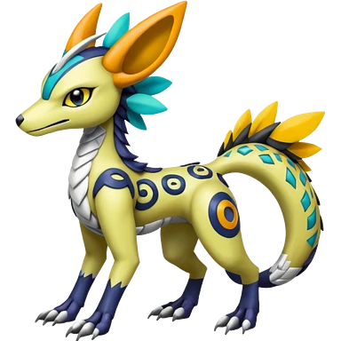 Colorful Meloetta-Electrike-Renamon-Wargreymon-Sergal-Pokémon-Digimon-Fakémon-fusion-hybrid-creature emoji