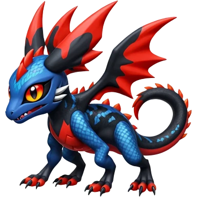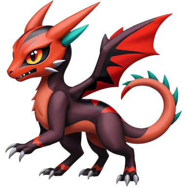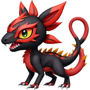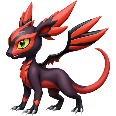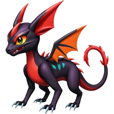 Colorful Cool Badass Meloetta-Litten-Noivern-Salandit-Guilmon-Darkrai-Pokémon-Fakémon-fusion-hybrid-creature emoji