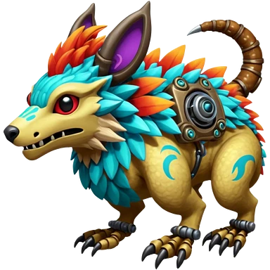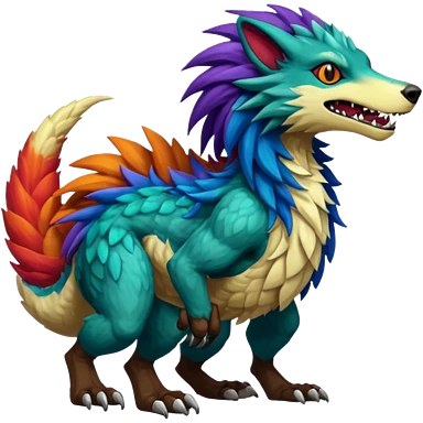 Colorful shiny furry scaly smooth glossy Vernid-Protogen-Grem2-Wickerbeast-Bagbean-animal-fusion-hybrid-creature emoji | AI Emoji Generator