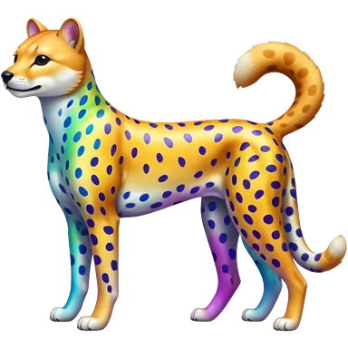 Colorful shiny iridescent Cheetah-Dingo-Snow-Leopard-Shiba-Inu-hybrid, full body emoji | AI Emoji Generator