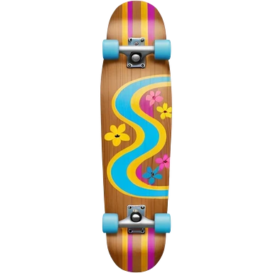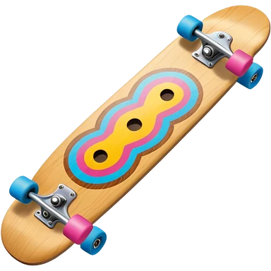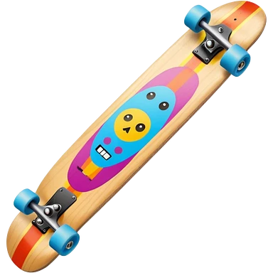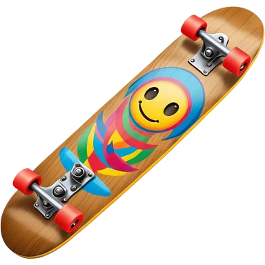 "An icon featuring a colorful skateboard resting on a smooth pavement. The background shows a sunny park with trees, a clear sky, and a lively atmosphere. The skateboard's deck is decorated with vibrant designs, emphasizing its dynamic style. Transparent background emoji