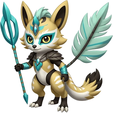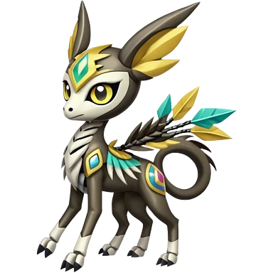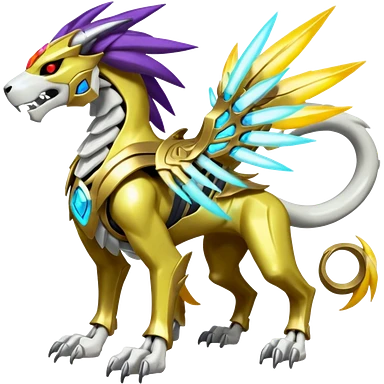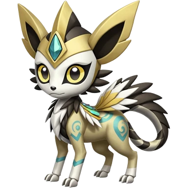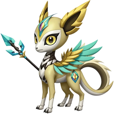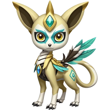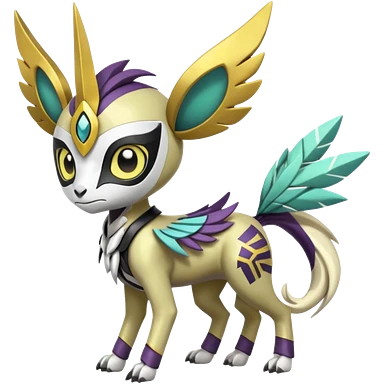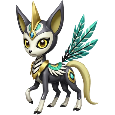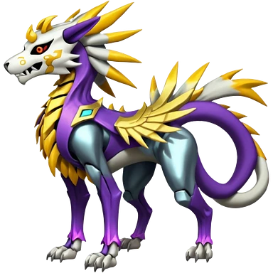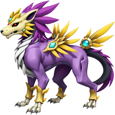 Colorful Skeletal masked armored Meloetta-Latias-Manectric-Solgaleo-Raikou-Pokémon-Digimon-Fakémon-fusion-hybrid-creature, full bodyemoji