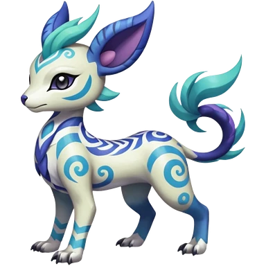 Tropical Tiny Marked Patterned Tribal Colorful Skilled Adept Graceful Asian Painted Garurumon-Meloetta-Absol-Suicune-Cobalion-fusion-hybrid-creature (full body) emoji