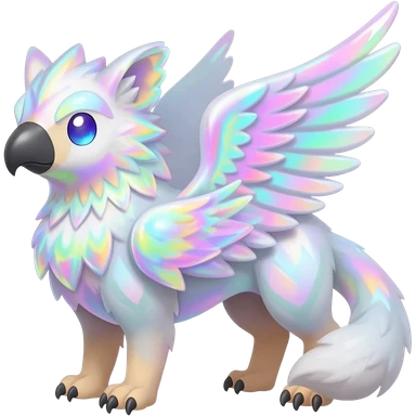 Colorful iridescent whitish pastelish luminescent angelic divine shiny sparkly glittery Gryphon-Trico-Sergal-Furret-Ferret-Wolverine-Vernid-fusion-Fakemon-animal-hybrid-creature, full body emoji