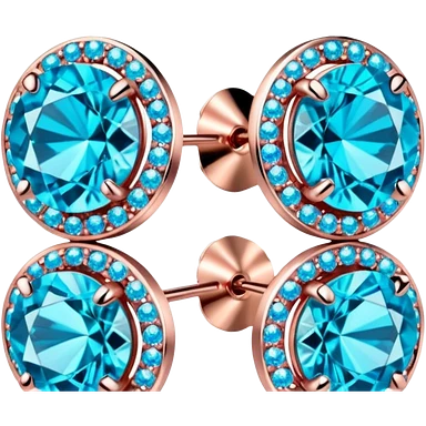Colorshifting turquoise to blue to pink sparkling realistic still life 4D rendering rose gold diamond earrings emoji