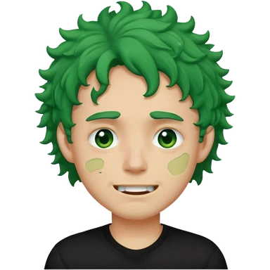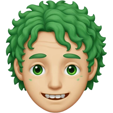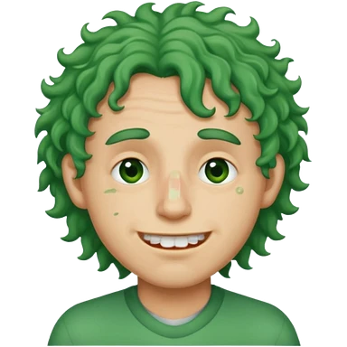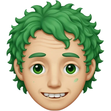 🙎🏻♂️com o dente serrado cabelo cacheado de cor Verde com marca de rasgo nas olheiras emoji