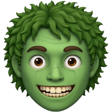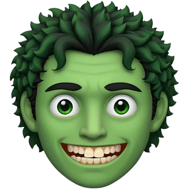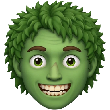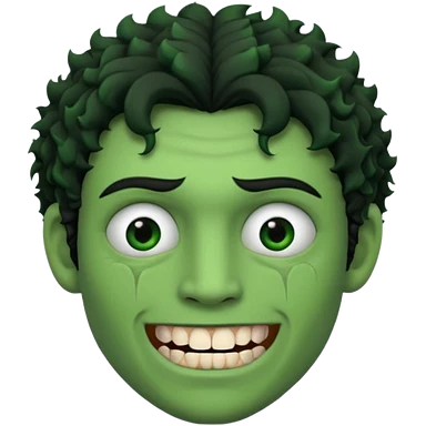 🙎🏻♂️com o dente serrado cabelo cacheado de cor de pele Verde com marca de rasgo nas olheiras emoji