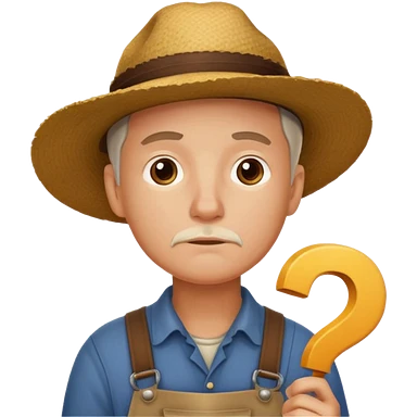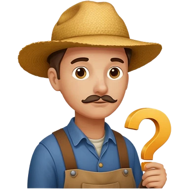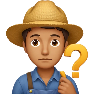 βA single emoji-style character combining π¨βπΎπ and π€: a smiling farmer with a straw hat, one hand under his chin in a strong thinking gesture, eyes looking upward thoughtfully, expressive face, clean flat emoji design, bold outlines, soft colors, transparent background.β emoji