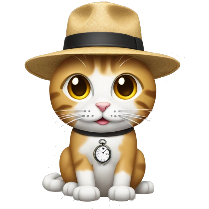 combine emojis to create a cat wearing a woman's hat and a watch emoji | AI Emoji Generator