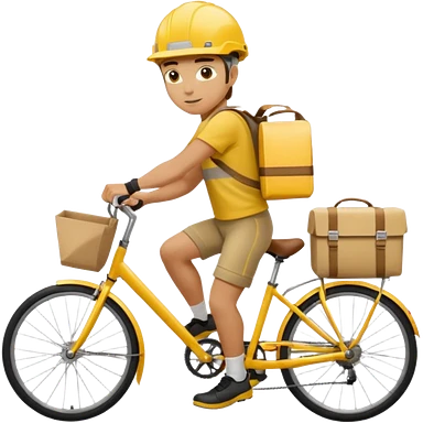 Courier + yellow helmet + delivery bag, City Cyclists. emoji