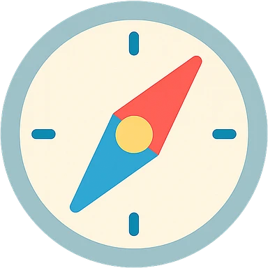 compass, flat color icon style, minimal details, bold shapes, suitable for digital interface emoji