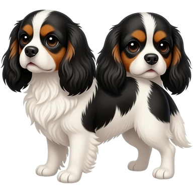 A tricolor cavalier King Charles spaniel sitting beside a black German shepherd emoji