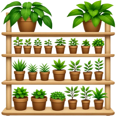 Complex curving Shelving wall to display and care for many plants emoji | AI Emoji Generator