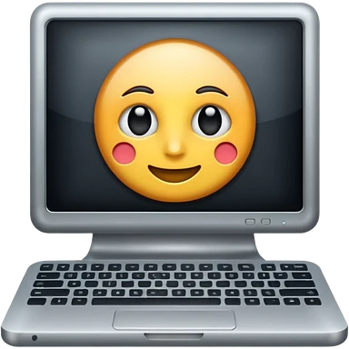 A 22-year-old woman with fair skin, dark brown hair, and glasses with purple frames, working on a compute emoji